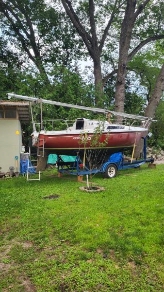 | Edel 665 "Sylvie Says".. 22" Fractional Sloop Rig with Skeg-Mounted Spade Rudder & Fixed Fin Keel. Beam 8.21', Draft 3.25', Ride Trailer Cradle, 9.9 Evinrude Motor '506'. Main, Jib & Spinnaker Sails, Solar Panel, Roller Furling, 2 Anchors (Claw & Fluke), 6 Fenders, Mooring Ball, Speed & Depth gauges, VHF Radio, Battery with Charger, Galley Seating area with Pop-up Top, Table, Propane Stove, Sink, Electric Pump, Sleeps 4, C, Compass, Electric Panel, 2 boat hooks. Location: Woodlawn, Ontario. Price: $4800 CAD negotiable. Additional Picture. Please contact Gisele at 226-929-9519, Email: cyr.gisele at gmail dot com. This item is also posted on Facebook. (21 Mar) | |