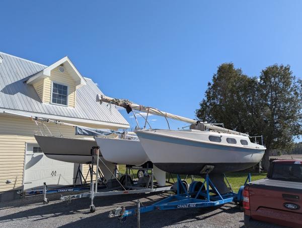 | C&C27 Mk-5, 1986, "Calypso".. Great boat with numerous recent upgrades. Genoa (new in 2024), mainsail in good condition, electronic instruments (wind, depth, speed), electronic autohelm, Yanmar diesel engine (serviced and ready to go), batteries (new in 2024), lifelines (new in 2025), head and sewage hoses (new in 2023), galley sink with electric water pump, cushions in great condition, LED cabin lights, propane BBQ, Folding cradle (new in 2024). Location: NSC. Price: $14,500 CAD. Additional Picture. Please contact Nick Blouin at 613-302-4582, Email: nick.blueone at gmail dot com. This item is also posted on . (25 Apr) | |